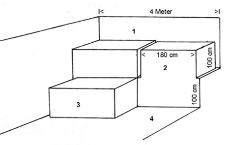 Figur 2: 1 = entstandene Höhlung des zuvor herausgebrochenen "Pappendeckels", 2 = rundherum gefuhrter Block, 3 = noch rückseitig zu fuhrender Block, 4 = entstandene Höhlung des herausgebrochenen Blocks.