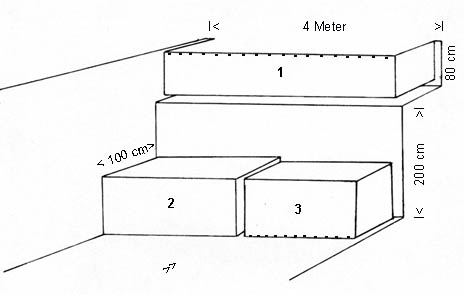 Figur 1: 1 = gehöllter und seitlich gefuhrter Pappendeckel, 2 = noch freizulegender Block (Blauch), 3 = rundherum gefuhrter Block