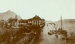 Abb. 1: Arbeits- und Verladeplatz am Rhein bei Hochwasser. Aufnahme: Karstein, ca. 1867.