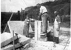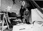 Abb. 14: Th. Rings beim Scheiden eines Blocks zu Ofenplatten. Aufnahme 1948.