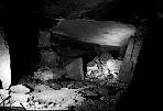 Abb. 5: Die von der Organisation Todt 1944 errichtete Betonsäule wurde 1947 von den Alliierten gesprengt. Helle Flächen zeigen, wo Deckenteile herabgestürzt sind. Höhe der Grube ca. 7 Meter.